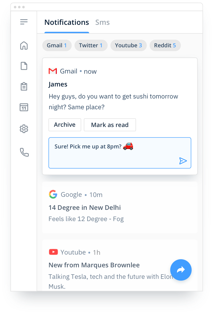 Archive mails, track deliveries, mark messages as read. Take action on all that matters to you. Take control on what is important and save time by cutting down on distractions.