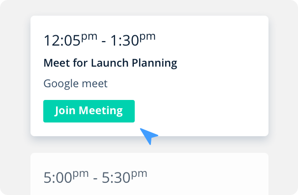 Sync your calendar with Crono to track meetings and appointments. Your upcoming event is always visible so that you never miss it.